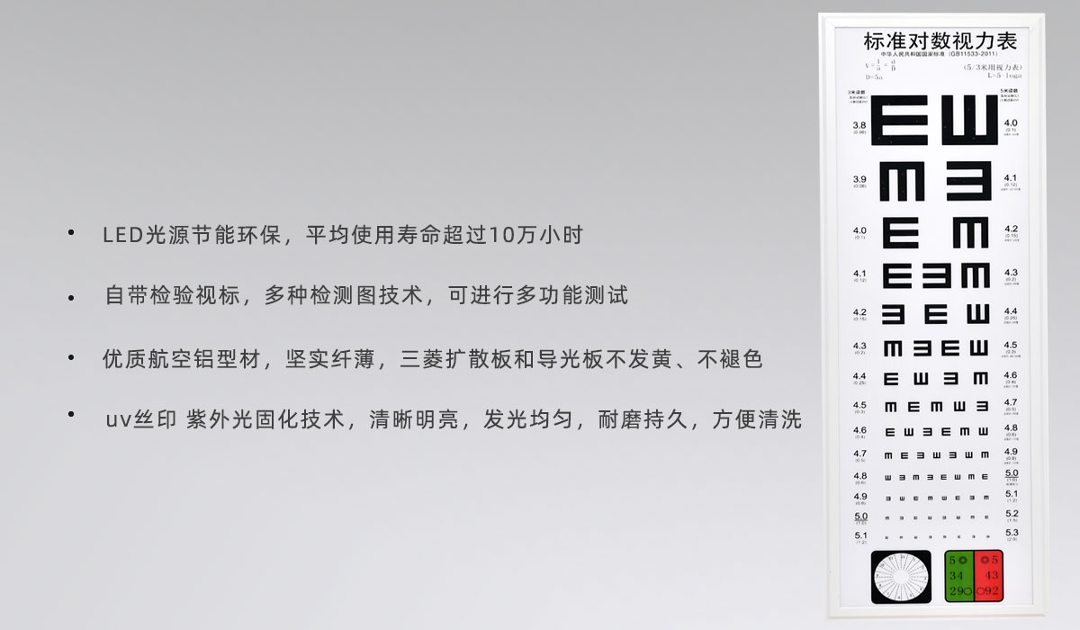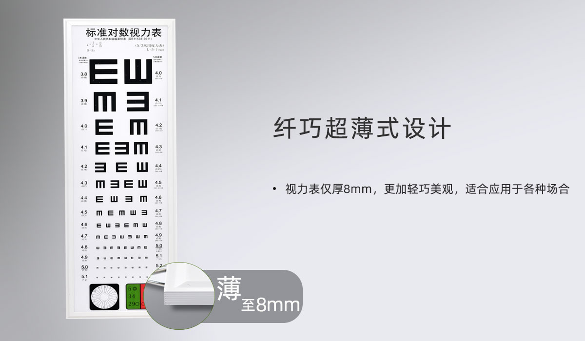 視力表僅厚8mm,更加輕巧美觀,適合應(yīng)用于各種場合 |